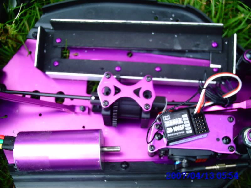 My RCMonster motor mount, heatsink clamp and pinions arrived and after some unplanned modifications I got it running tonight, it was after dark so I just gave it a quick test less than a minute, I didn't let it get far enough away from me and the street light to try for top speed but I was impressed by the acceleration (as good or better than my wildest scale hornet setup (and that had totally RIDICULOUS power), and stunned by the handling it seemed perfect, neutral going into a corner with some lift off oversteer should you need to tighten up, I was drifting round my first few corners nicely which surprised me as I haven't driven an RC car for well over 10 years and when I was driving regularly I couldn't drift nearly as neatly or reliably with my Hornet or scale Hornet pan car the L2P is a very good chassis right out of the box.
