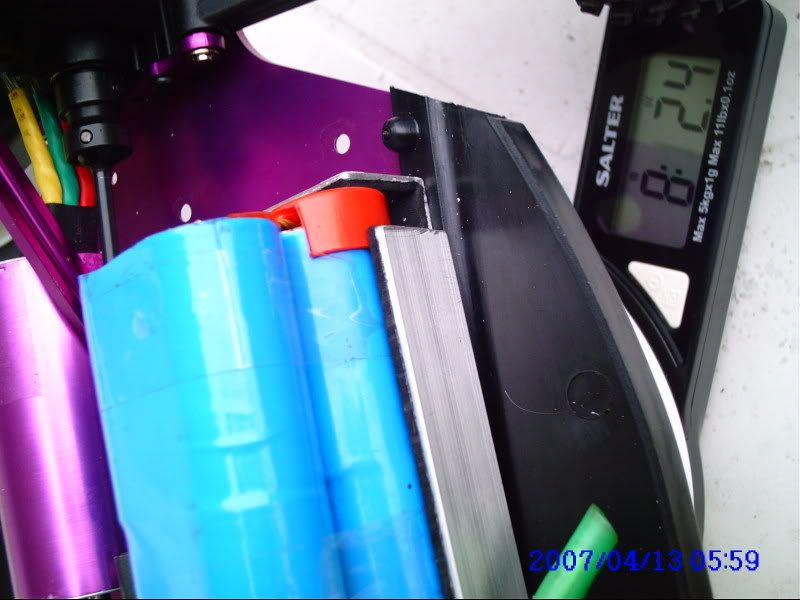 I re-formatted my 12cell pack, I made up a battery tray from alloy angle section lined it with foam and cut some carbon tube chassis stand-offs, but I'm waiting for longer bolts to fit it.