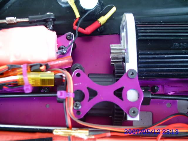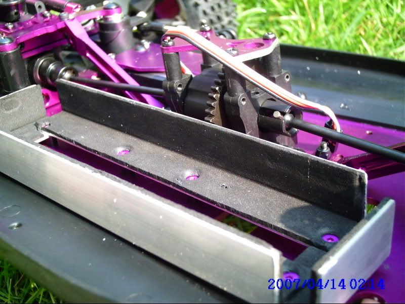 The holes in the top don't Line up, I bodged it by drilling another hole in the diff brace and put 2 screws into the motor mount and just one through the new hole into the front diff mount, It won't stop me giving it a good thrashing tomorrow, but will make up a wider brace that will take all 4 screws before I hit any jumps.