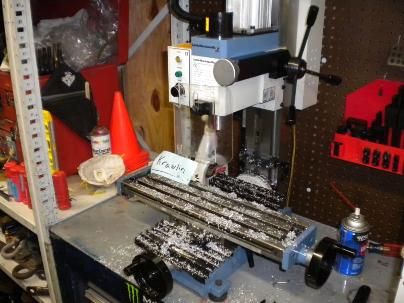 Here are some pictures of it, as well as an old T-Maxx chassis that became a practice part for my first time using the mill -