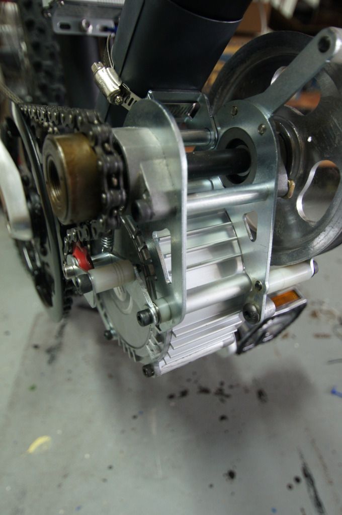 The bike is nice and took me a bit to find all the pieces to build it up. It's all aluminum and would be nice if Monster Mike could build this drive setup for us to run with big outrunner motors and Castle ESC's.
