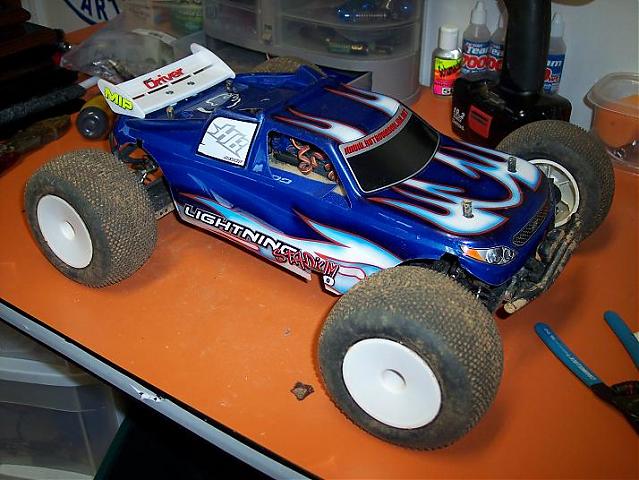 i got some compliments at the track but a few rough tumbles later and it was starting to tear the rear of my body up so i took it off. Still beating on how easy it will be to adapt the lightning10 buggy's wing to the LS10 i looked at them and even though they are of the same design the shocktowers and stuff are different.