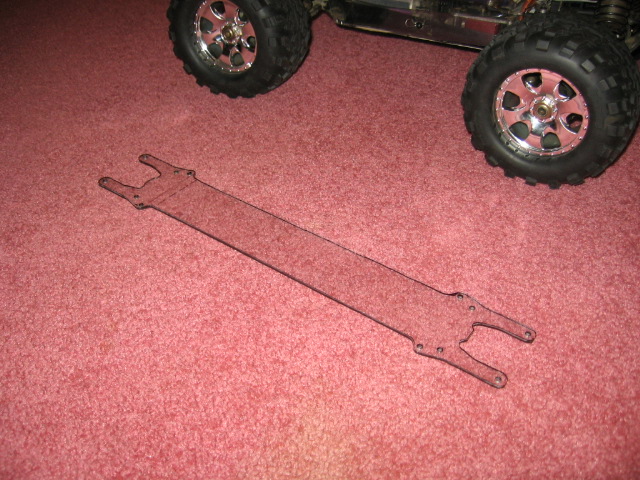 Thought I'd share a couple of improvements I've made to my BL Muggy. First is the back brace - see pics of the lexan template. Goes between the bulkheads and the shock towers, replacing the factory aluminum plates. It totally eliminates the excessive chassis twist that is the bane of all Muggy owners.