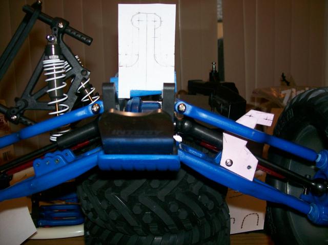 Revo style, I like but wouldnt really work for my appplication. I decided to go with an 8 shock ofna set-up. I think there a larger bore size than even the U.E. shocks, which does anyone know the bore size on those? I also have coming my G.A. bulkheads coming. So once i get shocks and bulkheads in hand Im going to start working on shock towers.
