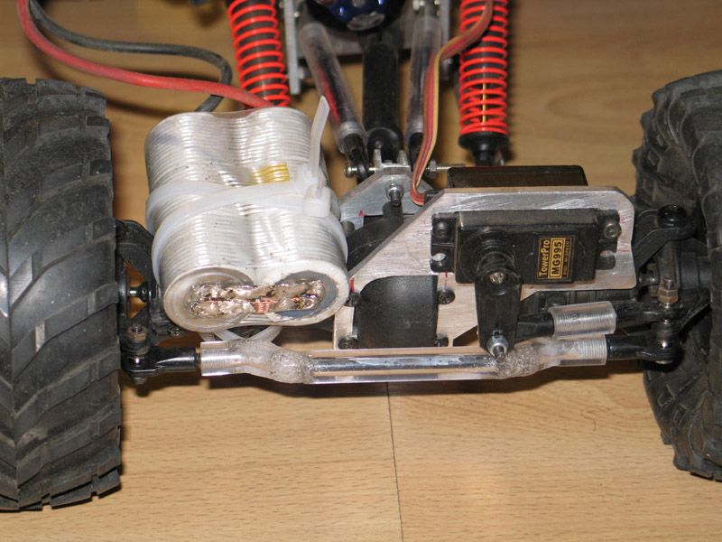 -2s A123 mounted to the front axle (had a couple cells left over from my 4s2p pack)