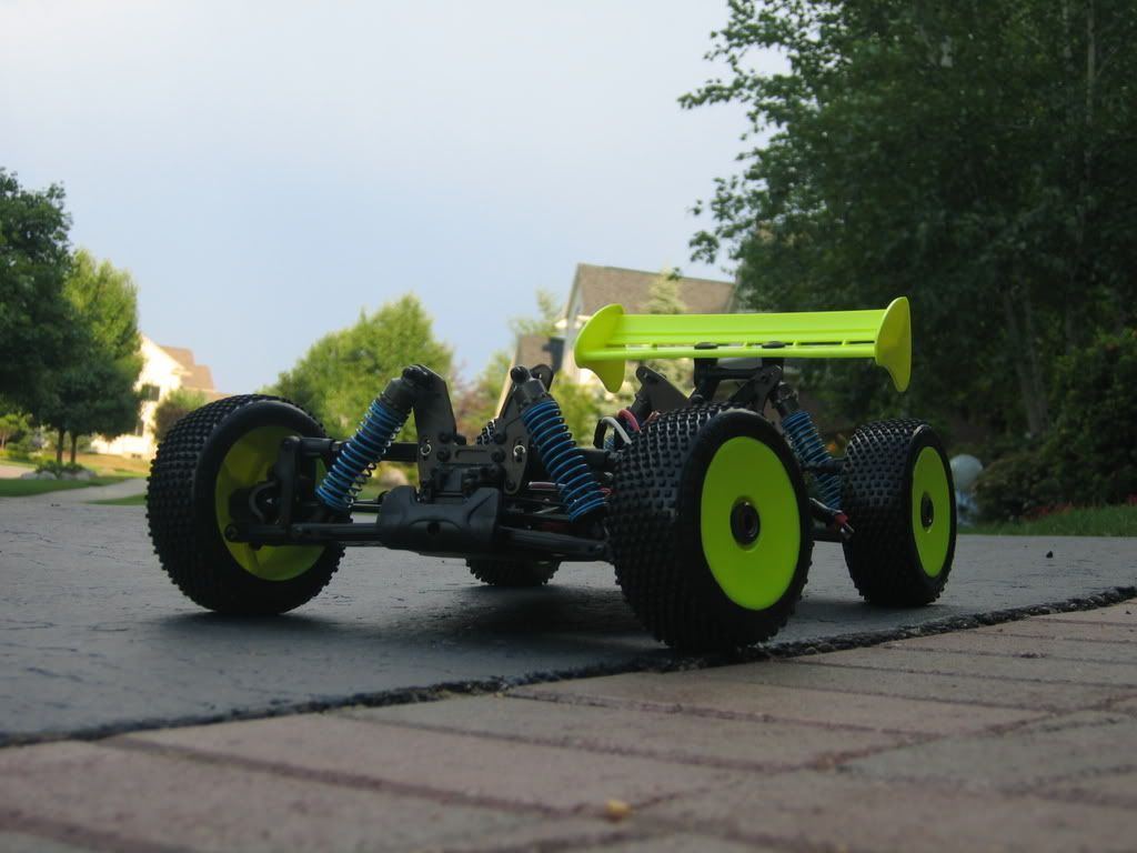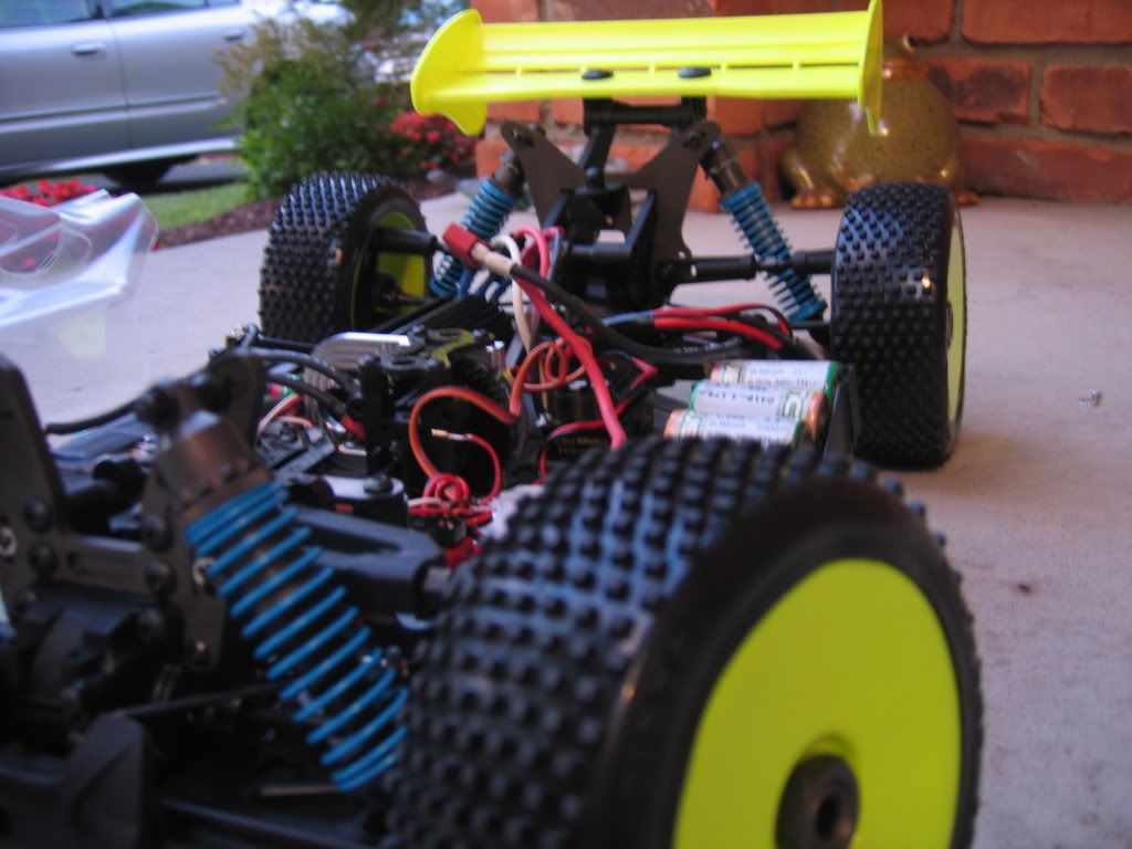 It tops out at around 38mph on the street and a little less in grass. It kinda had me wishing for a little more top end, but right now its perfect for a med size 1/8th track, so I think I'm going to stick with the gearing for now. I can always change it later if needed.