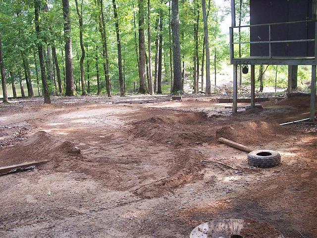 well i got bored over the weekend because none of my packages came in so i got a shovel and tplayurned my 1/18th scale track into a 1/10 and 1/8 shortcourse/ playground since thats all i ever drive up there anyways, usally were screw around when i dont feel like loading up and going to the mx track in the back pasture.... so now it should be alot more fun with the double crossover jumps, im gonna add a rythem section and i still have to move the take of he jump in the top of the second picture back about 10