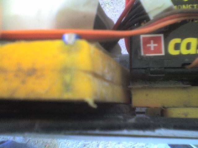 So does your dad have any c-clamps or wood laying around in the garage? Go buy yourself a piece of 3/16 lexan, or Centra at the hobby shop. Measure your battery and mark the width lines on the piece of material (add 1/4" to your measurement - its easier to add material than it is to remove it in this case. Use a straight edge or a square to mark the lines.