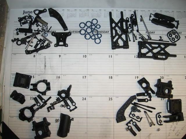 My E-Bay find!, I’ve got front & rear suspension and drive train along with all steering components. Now I can just about break anything on my 808 and I’ll have a replacement part for it… (Yes!).. some parts missing from photo, box 2, tomorrow?.