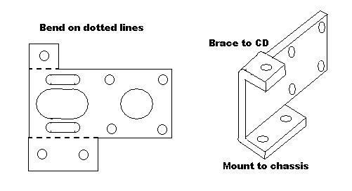 Why not simply stick with the L bracket idea, but also secure it to the CD mount? Something like this: