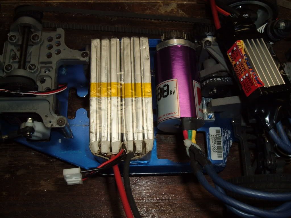 I got the motor mount in and put the center belt back on on mine. Looks like I have enough room to run 6s 2100 maxamps lipos, and I have that many "matched" cells (or at least what maxamps calls matched) so I may have to swap in a quark and give it a try. I will stick to a 5s pack at the moment, and see how it does. 5s and 20/41 gearing give me around 65mph, so we will see how this turd holds up to that.