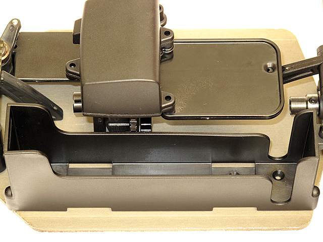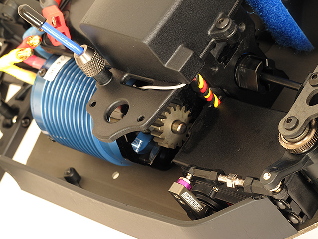 The MMP will go on the plate behind the receiver box, between the battery and motor. Bit high COG but whatever. They've done a great job with wiring with the new parts. Particularly, the servo wire is kept away from the spur nicely and the ESC wire will go directly into the back of the receiver box. It'll only be battery and motor wires exposed.
