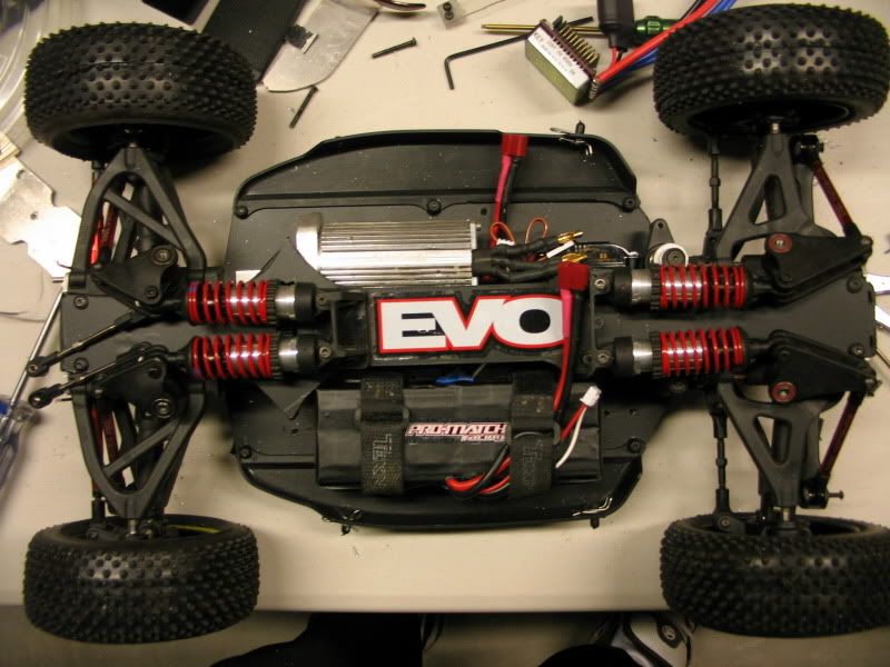 Now that I got set-up I'm going to start making a one piece upper chassis for the Evo8..Chewie (my friend who I sent the buggy to) let me know their is too much flex in the chassis. Too much for him to drive it. We are afraid if he did drive it the front end would get crushed. So I'm going to be making a one piece upper deck to replace the front and rear upper decks. I will also be doing some new thicker chassis braces. Haven't been able to get a hold of my friend to see if he has installed electronics. I'll pictures up once he gets that done. Then pictures of the upper deck. Once my buddy gets the new upper deck installed he will start the testing.