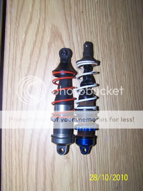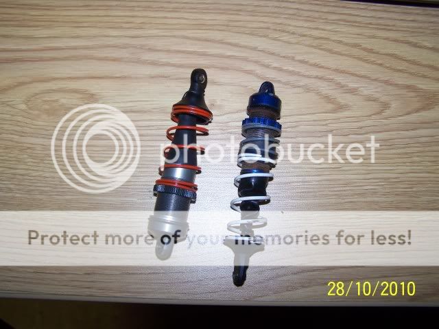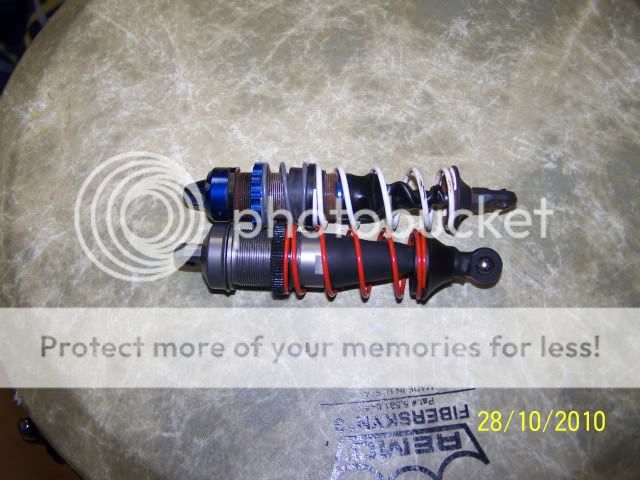 I'm not selling my old equipment. LOL I have more suspension combinations than I should tell. Here it goes. Ultrashocks, Big Bores, 8Supershocks, 8 Power Strokes, and now 4 16mm Vorza buggy shocks. FLM towers, Traxxas towers, Knuckle heads, Duh towers. So the all of this only takes 30 mins to put on in a combination. I hope the Vorza shocks will perform on the normal track, as well as alittle jumping, like you'd see on a track with down ramps all that. If I want to perform back flips or anything like that the Powerstrokes should do in the top hole on the duh towers.