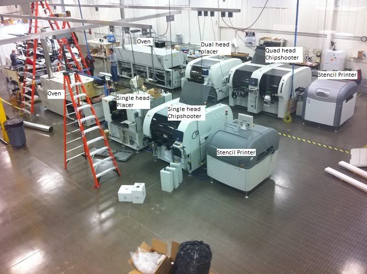 Then the boards are depanelized (cut apart -- we build anywhere from 20-120 circuit boards in a single panel) and queued for finish assembly, testing, and packaging.