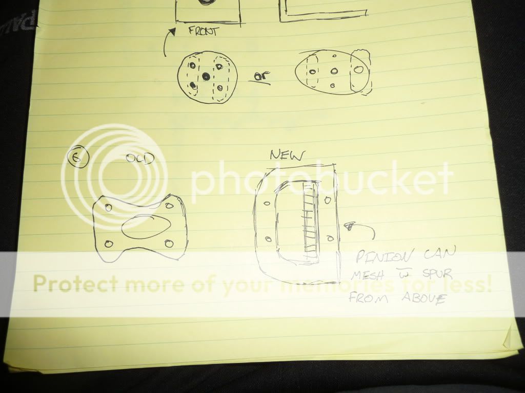 I was bored so i did some measurements to fin the min and max pinions for my new motor mount. If i run the 1717 i think i am limited to about a 12t pinion and i can go as far as about 30T if i want to.