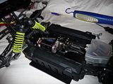 The motor in it is the same diameter as the CC 1717 and is at its lowest point. The big flat cylinder is the spur gear and the long thin cylinder is the diff outdrive. As i don't have the proper measurement for it i am using the bearing that is a little bigger than the outdrive.