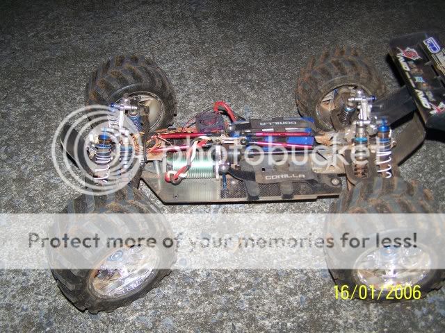 Yeah but it wouldn't be a great idea. You would not be able to mount them in the same position. Thats a lot of oil for one spring. I think you would need black springs on every corner. You would be better with just 4 super shocks. I have ran four regular Proline Powerstrokes and four super shocks at the same time. It just makes the truck heavier really. lol If you had the them already it might be fun to try but if you are trying to solve a problem by buying them. I wouldn't. I do(did) wish the supershocks held alittle more oil. You could look at super shocks reservoirs. Maybe someone will post up where to find them. IDK.