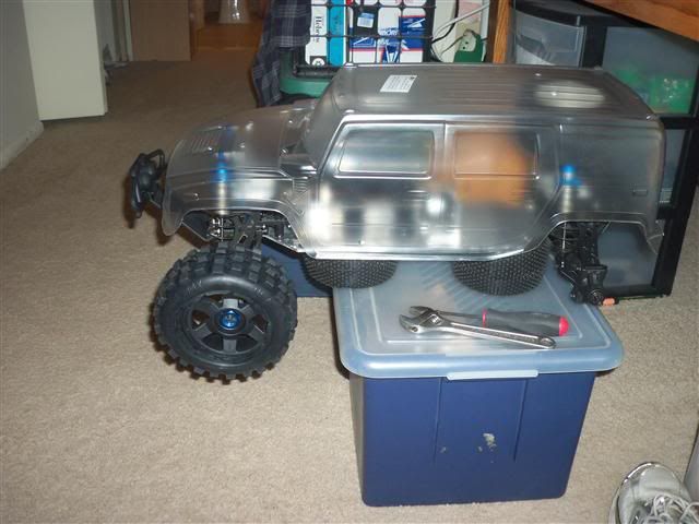 Here's a little progress. I've been mounting battery trays and installing the front FG bumper that goes with the Hummer body - I still have a couple more support bars to install: