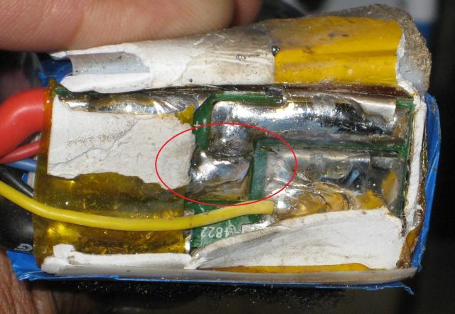 If it were a much thinner solder trace then I's say it was over-current ( is a built-in feature on some lipo packs, designed to act as a fuse of sorts.. ), but a trace that fat... weird....
