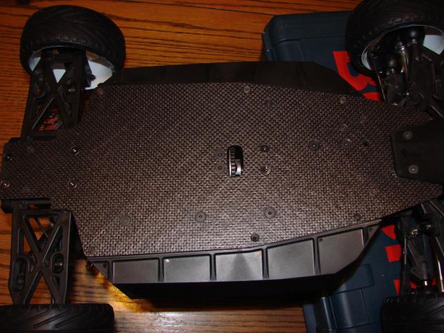 Hey guys I have finished my Carbon Fiber chassis.It came out great.The original chassis is offset to one side so I made the CF chassis symetrical.It was actualy pretty easy I used a jig saw to cut it out and countersank all the screws.I also picked up a Neu 1515.5y/s new for 200.00 bucks.Put a Losi heatsink on it and run it on 3s.Its fast!!!!!!!!!!!!!!!.