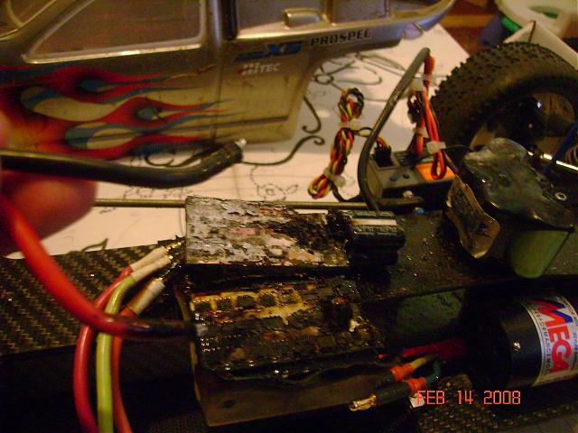 The fire happened fast too. I've had ESC burn on me, but it was usually just smoke. I was able to get the body off fast enough and I kind of tilted the truck so the flames and any hot stuff would just fall to the ground. I actually saw that the copper traces was red hot.