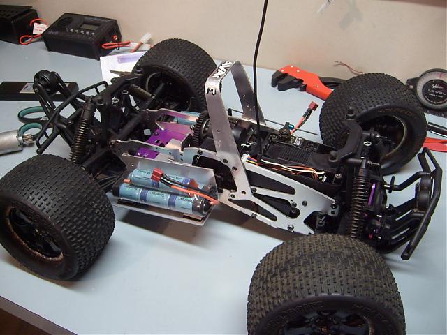 I will mount the esc on top of the radio box on that velcro looking stuff, the balance plug you [dont] see if a cheap 3s lipo for my fan. The motor has a custom mount made out of angle stock and will be under an 80mm computer fan.