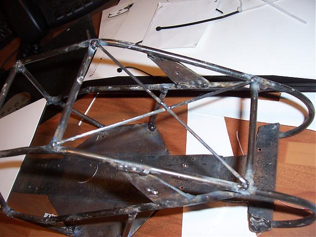 The chassis is welded together with a small inverter welder and the tubing is actually from the old shelf in a fridge that I found (i cut/melted the white plastic off it)
