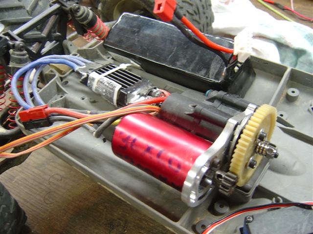 Well actually I dont think its too bad. By not having the motor sitting at the bottom of the tray and further out it might actually equalize the weight of the lipo. Lets say a 5s PQ 5000 mah is 646 gr and a neu 1515 finned is 360 gr. With the way the battery sits in the tray, some of the weight is more centralized and with the motor a little higher and away from the tranny and the esc on the say side it should equalize the weight of the lipo. Plus you probably wouldnt want the motor sitting down in the tray as only the top half of the motor would be a lot cooler than the bottom.