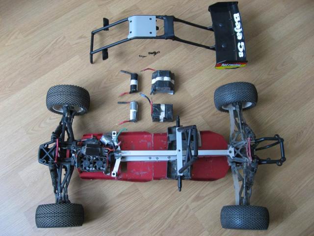 This is a pic of how i run the baja. It wheighs 5.5Kg (12.12lbs) with 11s1p A123. The painted body will add around 3.53oz (100gr).