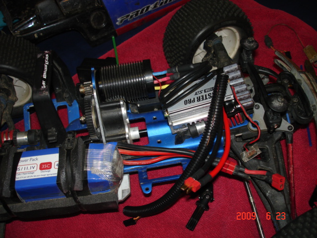 it's a 125a esc, where you see the power cables there are the bigger caps. like that after hard bashing the temperatures are around 30-40 deg. c.