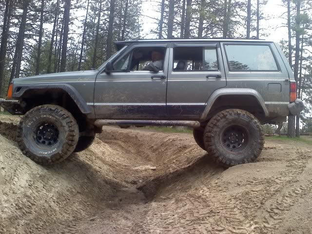 I do some wheeling too. 88 Cherokee, 8in lift, 33-12.50 interco thornbirds, wrangler front flares with cut fenders. Still need to get a better lift though, still rockin the stock short arms but still articulates pretty well.