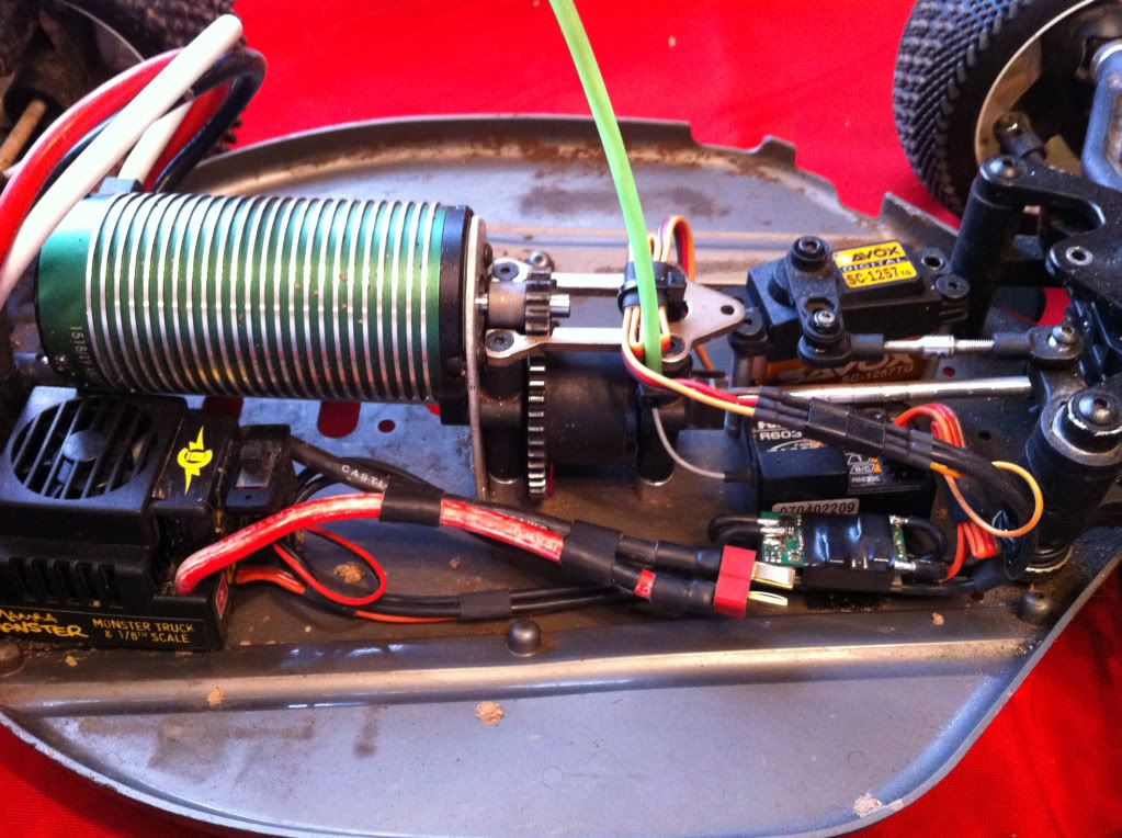 So far I like the layout with all the stuff centered in the chassis, the motor is high above the chassis plate but I think it's a good compromise to be able to run a pair of large lipo's for power and run time. Can't wait to get the lipo's installed and running.