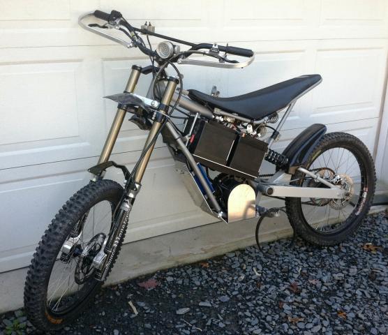 Got the modules installed last night and went for a night run! WOW what a difference the lipo conversion made. First ran at 66% current limit(200 amps) then in full power mode(300 amps at 74 volts in theory, though in unlimited mode it bursts higher amps). Full power mode is downright scary - I seriously am in need of a better throttle(only 90 degrees of twist makes for a twitchy ride) - I would like to get a 120 degree throttle to add some resolution for sure. The gearing tops it out at around 43mph and it gets there in a hurry! At 25, if you grab full throttle, it will throw you off the back unless you let up quickly - feels like a kx250 when it hits the powerband! I dialed in a progressive curve and went back to 80% current limit(240 amps) - theoretically limiting the power to around 20HP, which is plenty for a 150lb machine. I am totally psyched!