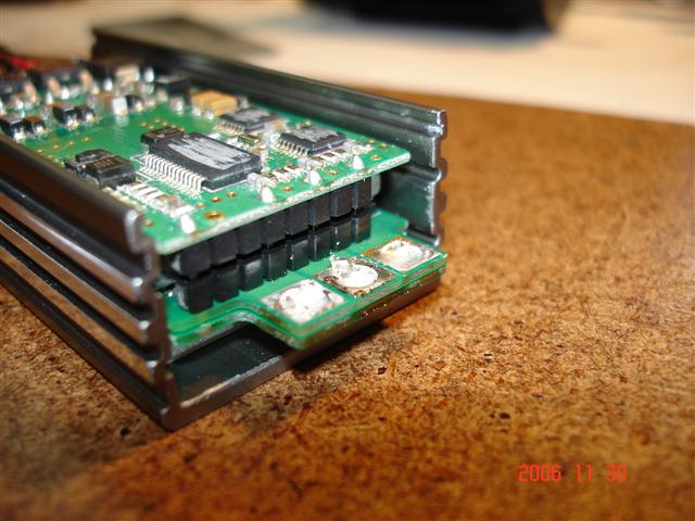 Anyways, i go it all apart, except for taking it off the case. I notice that there is two alum. slabs one on both side of the bottom circuit board, and it looks like they are the same FET's ???!!! What!? Do you know if this is true? Or are they for something else? CHeck the pics, if they are the same FET's then maybe all they need is some heat spreading? And the thermal pad is just to attach to the case? It also doesn't really look like the pads are .5mm, they look thinner than that, maybe .3mm? I don't know... I don't want to take it apart yet, i don't have Thermal Adhesive at the moment, i'll pick up some Arctic Silver stuff when i can.