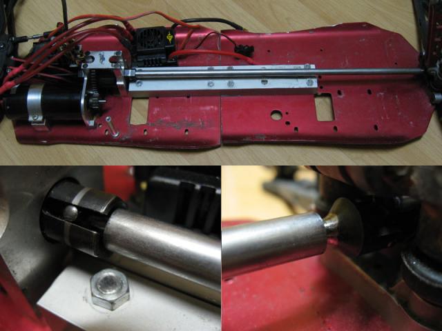 I'm now using 1:5 GRP Bulldog Baja tires. I mounted them using extended 23mm proline wheel hubs. I wrapped the 23mm hex with a thin aluminium layer to compensate the difference between the 24mm wheel hex and the 23mm hubs. I extended th long rear center cvd with an 8mm steel tube. Unfortunately, i was not able to center it well onto the original cvd pieces. This is why it still wobbles at higher rpms and leads to heavy vibrations.