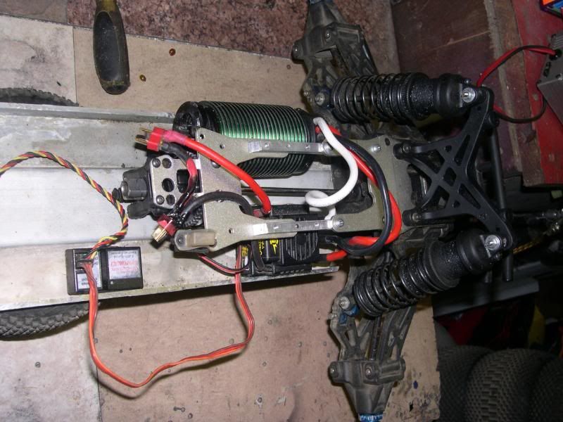 Had to notch the chassis and eeeeeek mod the Rc-Monster motor mount so the screws would pass through it, but it wouldn't be a project