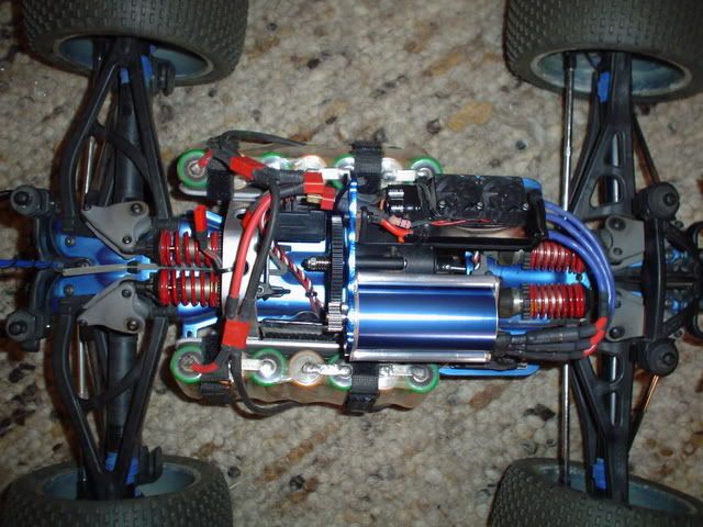nice. might i suggest something? well, i would reverse the tranny and mount the esc on the rear shock tower to put some weight in the back so it wont be nose heavy.
