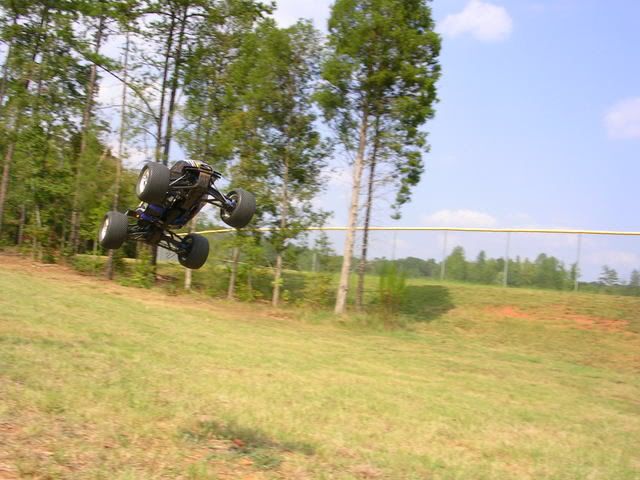 Thought I'd post a follow up to the single battery part of the thread. I finally got some pictures over the weekend of a couple of good jumps. As you can see, she flies pretty level. Normally the only weirdness that happens in the air is caused by operator error.