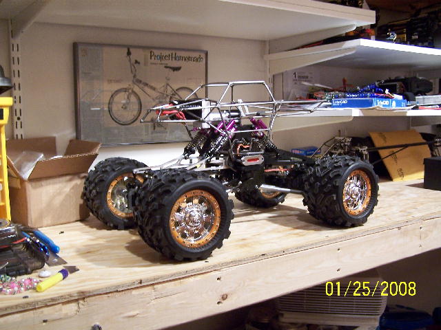 This is a build thread for my latest TXT incarnation. Of course the only stock parts left are the axles.  Anyway, it is running a 1512/2DF on 4S through a Mamba Max ESC (or it will be once I get it finished). It is 4WS running two JR DS7811 (403 once torque) steering servos. Every suspension and chassis part was made in my shop. I am finishing up the swaybars and related hardware over this coming week. It should be ready to run after that.