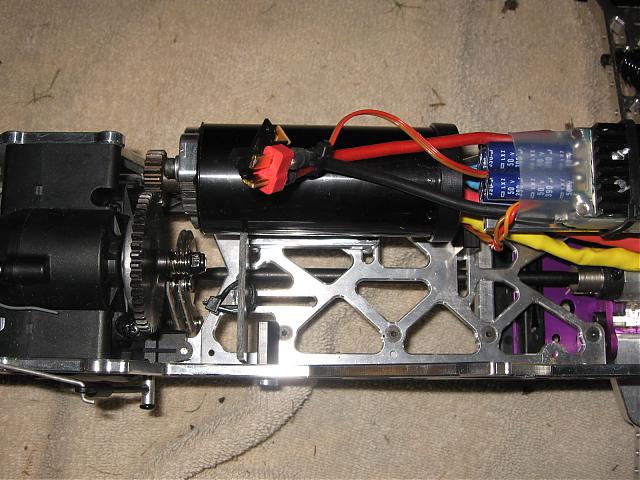 Just thought I'd post an update. I installed the electronics last night and programmed the MGM using the USB link, which is a very cool feature I think. I reversed the motor wires because the motor was spinning the wrong way and got everything ready for an indoor test, just to see if everything was working. Well I managed to screw something up with the motor direction because it was still wrong and this time the motor drove the spur in the reverse direction and stripped to teeth off the 1st gear (the only plastic one in the three speed). Not only that but it broke the one way bearing which now is a two way........