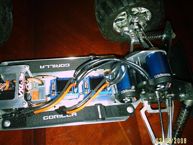 I know those shocks are beefy, but they are really bad. They wont hold up and the seals will take a dump on you. I say this because if your going to do that thing up right you dont want the bottom scraping its way and then you end up stripping a gear, folding an A Arm, or something else. remember my friend the MRC is not in supply of consistant parts availablity. And for the price of the shocks I mentioned to you. A set of 4 cost less then a set of 8 maxx shocks. Been using them for years and I will vouch for their stability. realize that I have been building and designing RC's for years so I do have alot of experiance in this. I cant say that money is a big problem for you since you are spending money on the other parts. On that dog bone, Well im going to have to check that out, I never really tied it. Mine is already titanium bones, they just braised them together at a machine shop using a plasma torch. Its pretty strong. I can bend them at all. But it's nmice to know there is another oppertunity out there. As far as the upper deck. Well the reason for that is because of the center of gravity. You know there was alreasy a mount for a single battey of that truck to begin with. if you removed that and the other end that held the mechanicle speedo, then you have now room to place 2 batteries side by side. They will weigh more than the ESC and the reciever combined even if they are lipo's and placed like that will leave no room for the speed control or reciever to sit. You dont even have to make a full deck like I did, there is another reason for the deck then just to place the controls. it acts like a control rod, keeps the truck from twisting too much upon impact with the ground. The stronger you make your chassis, the better the control. If you ever look at most 1/8th RC's you will notice they all have that feature. 4WD's have the bar for protection as well as stability. So though I like what your doing, I assure you I have been there done that for 5 years now.