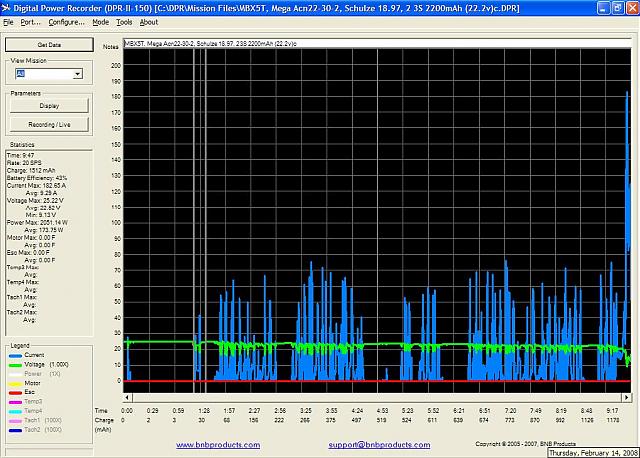 . I found a nice dry spot to run my MBX5T. I was going to run it until my 2200mAh packs didn't have more juice in them. Everything was running very cool since it was 38 degrees and you can also see in the graph I stopped a few times to make sure nothing was over heating. I did a feel full throttle passes and on one pass I slammed on the brakes and did a nice little slide. The truck rolled backwards and I applied some throttle to get it rolling again and smoke