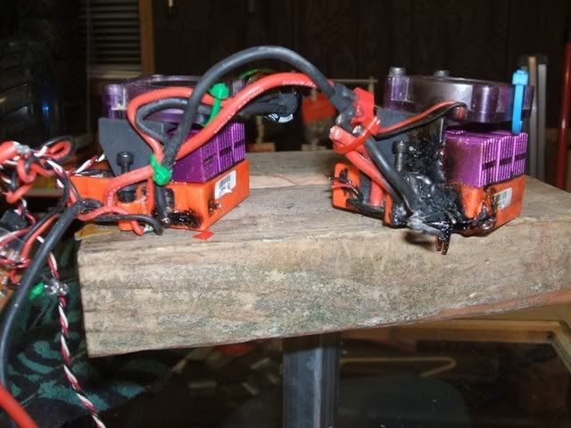 What can be causing this? First the HV esc in the Evo and now the HV esc my maxx. When I found the esc this time I am sure I heard laughing. It's a cruel joke for the RC Gods to be playing on me. I hadn't even ran this one all day. It had not been outside to get wet. I didn't added an extra capacitor to it. I was replacing the RR pinion in the front diff. Correct me if I am wrong but the front diff doesn't have anything to do with the esc. I plugged in the batteries to test it on the bench. Tested it and turned it and the controller off. Walking past the room later smelled the electric burn smell and thought I was never going to get that smell out of here. From the first esc burning up 2 weeks ago. It was this one! I swear when you have more then one RC things always go in pairs. Axles, diffs, servos, ESC! This just doesn't make sense to me as to why this could happen. I am sure I had this and the first one turned off at the switch. Spontanious combustion? Maybe I better not get that Nitro Rustler this spring.