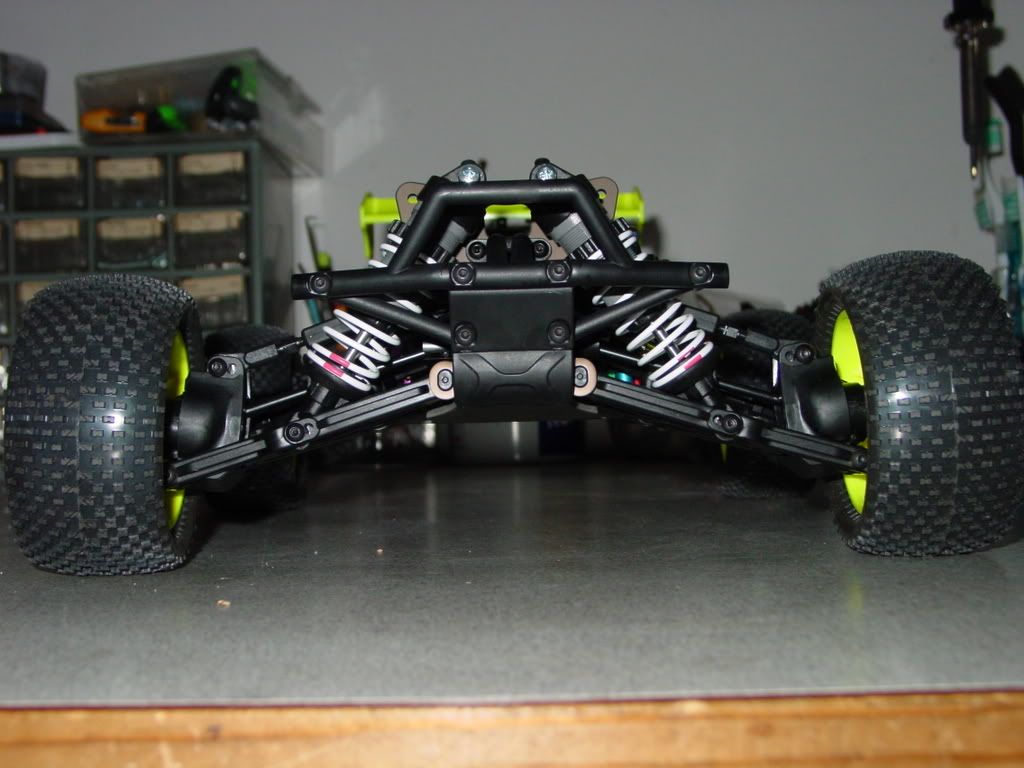 Looks great. I should have my ofna big bore shocks for the rear this week. They are coming with ofna soft (yellow) buggy springs. I'll let you know if I can get the rear bones level with these springs.
