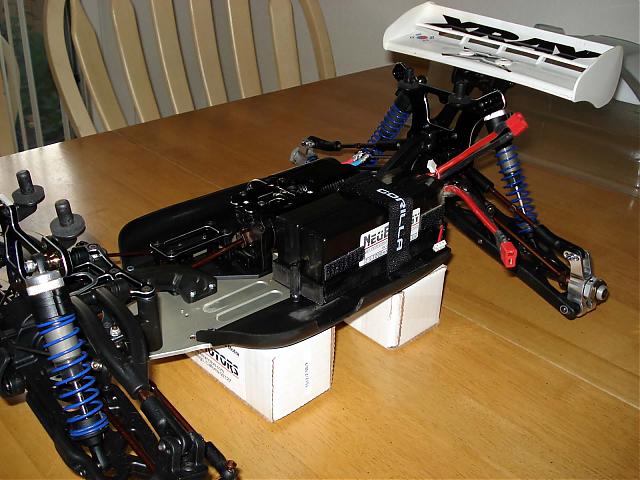 It was to make use of existing holes in the chassis. The nice thing is that I didn't have to drill any new holes yet. If the weight distribution becomes an issue, the batts can be moved forward very easily. I'll keep your point in mind when I start fine tuning everything. Thanks.