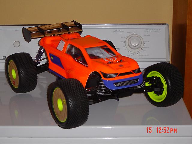 Got my Neu 8T together night before last and Monster installed and functioning. Haven't it on the track yet but do have some initial impressions to share. Programing went extremely smooth. Apparently too smooth as when I finished I had no throttle. Steering worked but no power to motor. After reprogramming several times and flashing w/the newest version on the Castle Link, I was about to give up. Then I remembered Hautz's comment and the custom lvc which I had set at 12.2. Sure enough, read the settings and it had changed to 24v. I reflashed with the lvc at 12.0 and I was in business. I had fully planned to install manual brakes on the Truggy but after realizing I didn't have correct and or long enough linkage I completed assembly without the second servo installed and programmed 30% brake. Unlike the Quark, and to my surprise, one underway in front of my house I found the brakes to work extremely well and had excellent "feel" to them. If they work as well on the track as they do in the street I will abandon the manual brake plan. Also, the Monster is extremely smooth on take off. No brutal hit although I am programmed with 20% punch control till I get some track time and see if my PolyRC 3700 20c pack will handle the amps that the Monster is able to pull; I think it will be just fine for 5 min. qualies but time will tell. Planning to race it in San Antonio tomorrow so should have a more comprehensive report Sat. or Sunday. Pics: