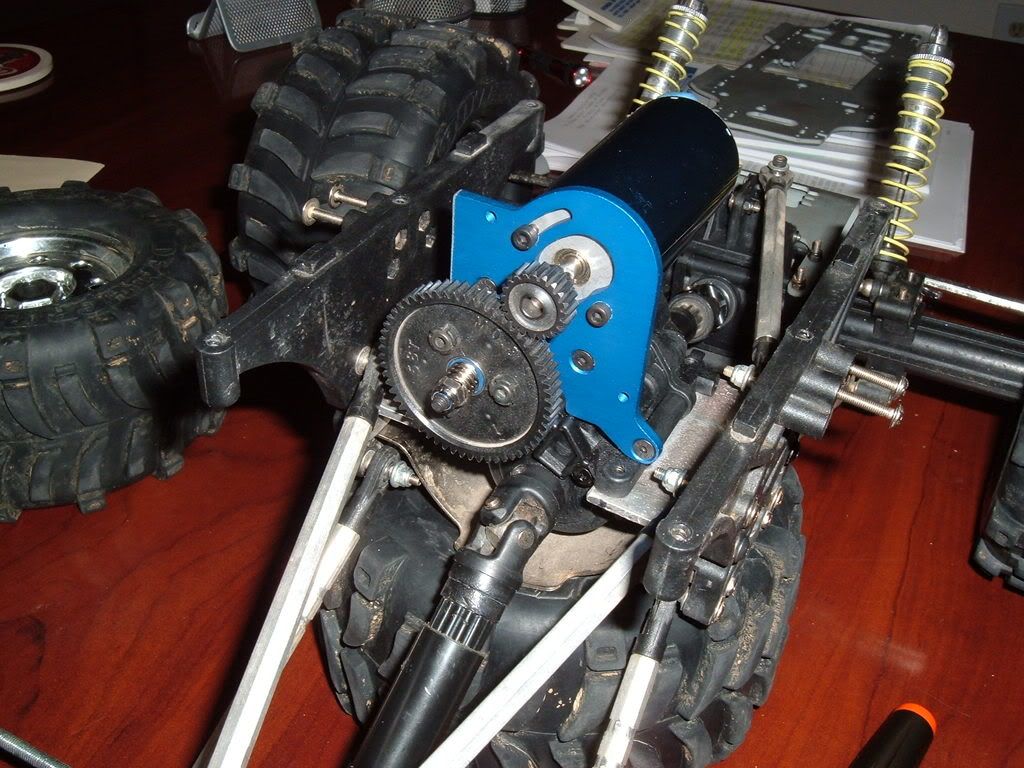Got the emaxx tranny together and fabbed up some mounts for it. I also modded some revo driveshafts for the center drives. Used some of mike's 8mm pinion adapters to mate the revo sliders to the xtm diff. Everything fit together well and she rolls now!