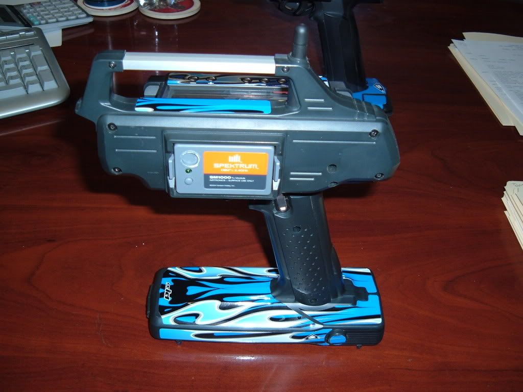 Modded the M8 to have the spektrum antenna in the stock antenna location, and not out the side of the module. Looks alot cleaner. I will use this radio with my electric 10th scale vehicles, and possibly with the boats.
