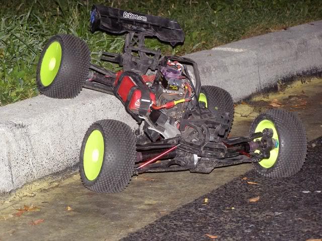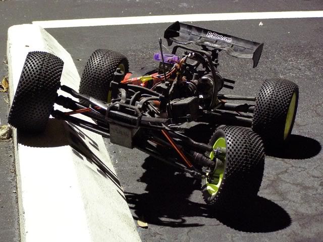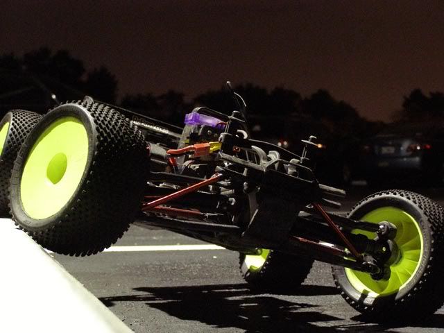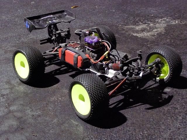 Linc, it is in a converted revo, rc-m mount, tekno battery tray and esc mount, geared 17/38, 17mm adapters and crime fighter lpr's. Until I get my MMM back I am using an MM + ubec + fan. and JR ds8611a steering servo. 10.1 lbs with desert rat body on.